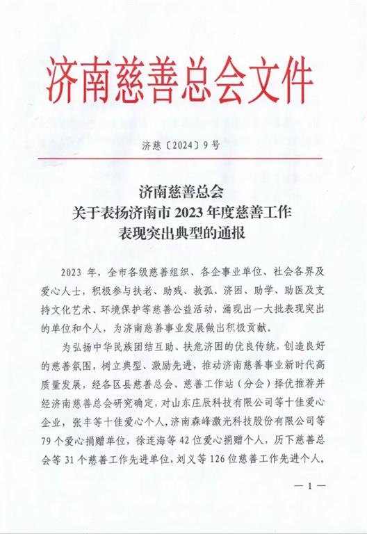 集團榮獲“濟南十佳愛心企業(yè)”榮譽稱號