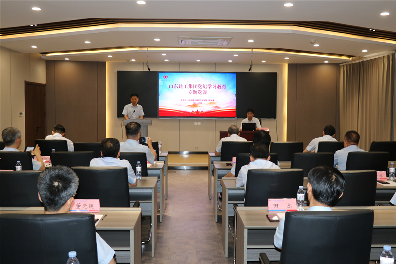 為推動黨紀學習教育走深走實,集團赴中共山東省委黨校省住建廳分校組織黨紀學習教育專題黨課。山東城建學院紀委委員、紀檢監察室主任、副教授陳海濤擔任講師。集團黨委書記、董事長王彥宏,黨委副書記張方明,副董事長李繼念,副董事長師厚紀,集團總部領導,各分(子)公司黨支部書記參加。